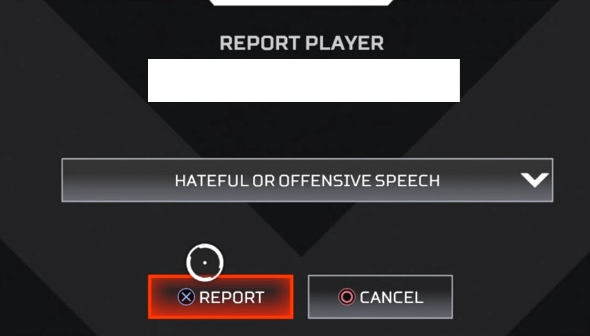 5. Klik op de juiste categorie en het kwetsende gedrag dat je wil rapporteren. Klik vervolgens op “report” of druk op “X” op je controller. Nu is jouw report verstuurd naar Respawn (de gameontwikkelaars van Apex Legends). Zij beslissen wat er wordt gedaan met jouw report. Let op: Je krijgt hier geen terugkoppeling van.