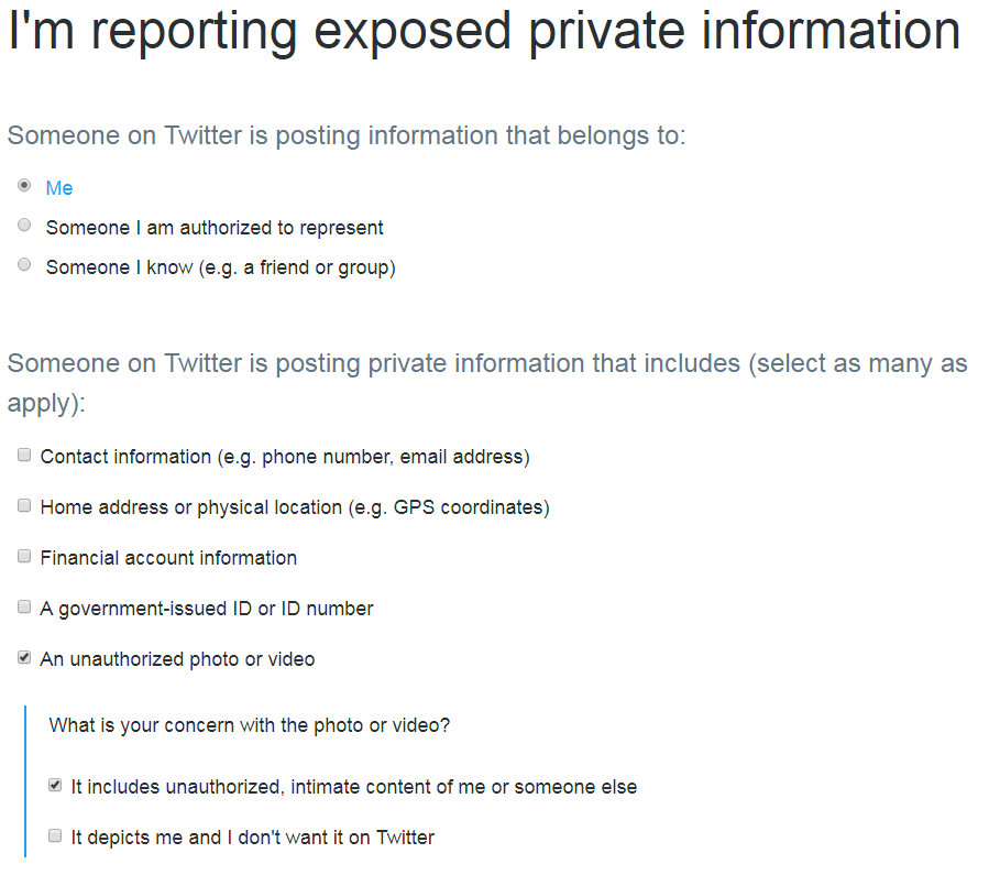 Daarnaast kun je een afbeelding die van jou geplaatst is, rapporteren via dit meldformulier van Twitter. Dit kun je ook gebruiken als je zelf geen account hebt op Twitter.